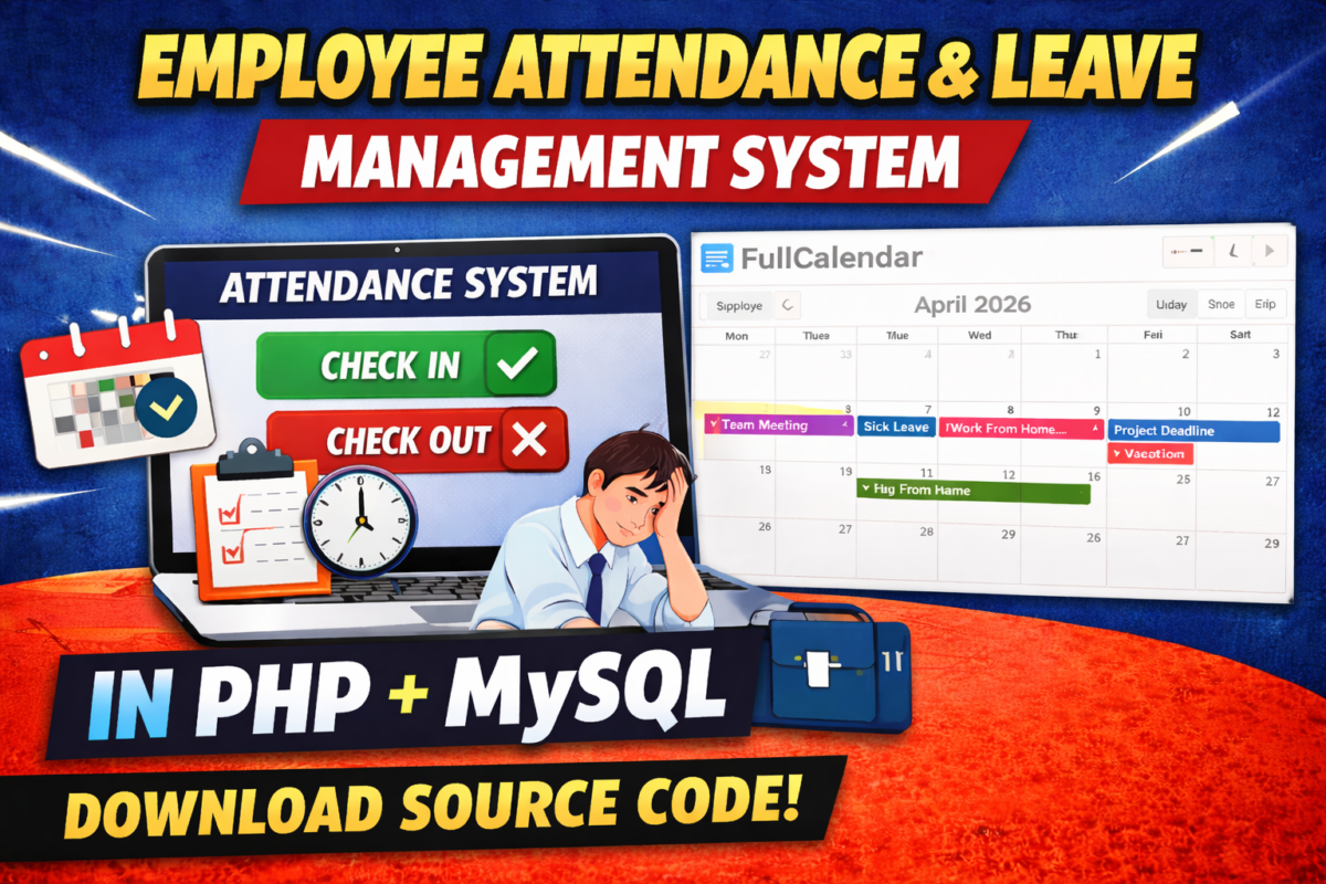 The Employee Attendance & Leave Management System Project in PHP MySQL is a complete web-based solution designed to manage employee attendance, check-in/check-out, and leave records efficiently. This system uses JavaScript FullCalendar to display attendance and leave data in an interactive calendar format, making it ideal...