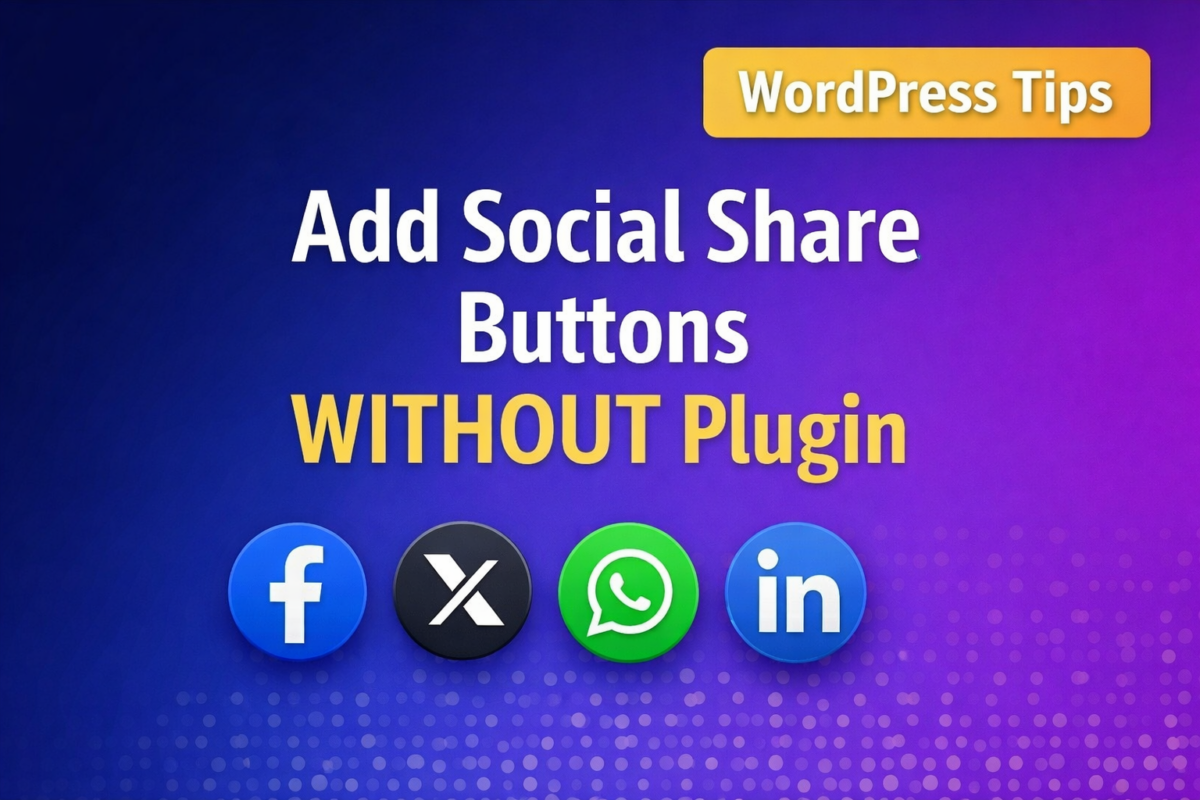Social share buttons help visitors easily share your content on platforms like Facebook, Twitter, WhatsApp, and LinkedIn, which increases traffic and improves SEO. Most WordPress users install plugins for this, but plugins slow down your site. In this tutorial, you’ll learn how to add social...